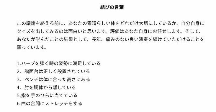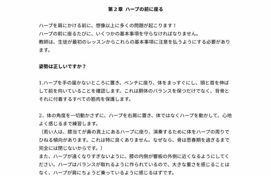 第2章 ハープ演奏時の正しい座り方 (How to properly sit at the harp)