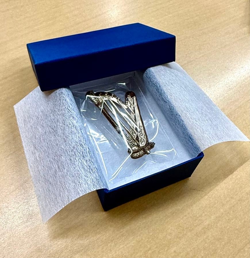 名器の風格を、胸元に。世界が愛するハープを忠実に再現した、こだわりのブローチ