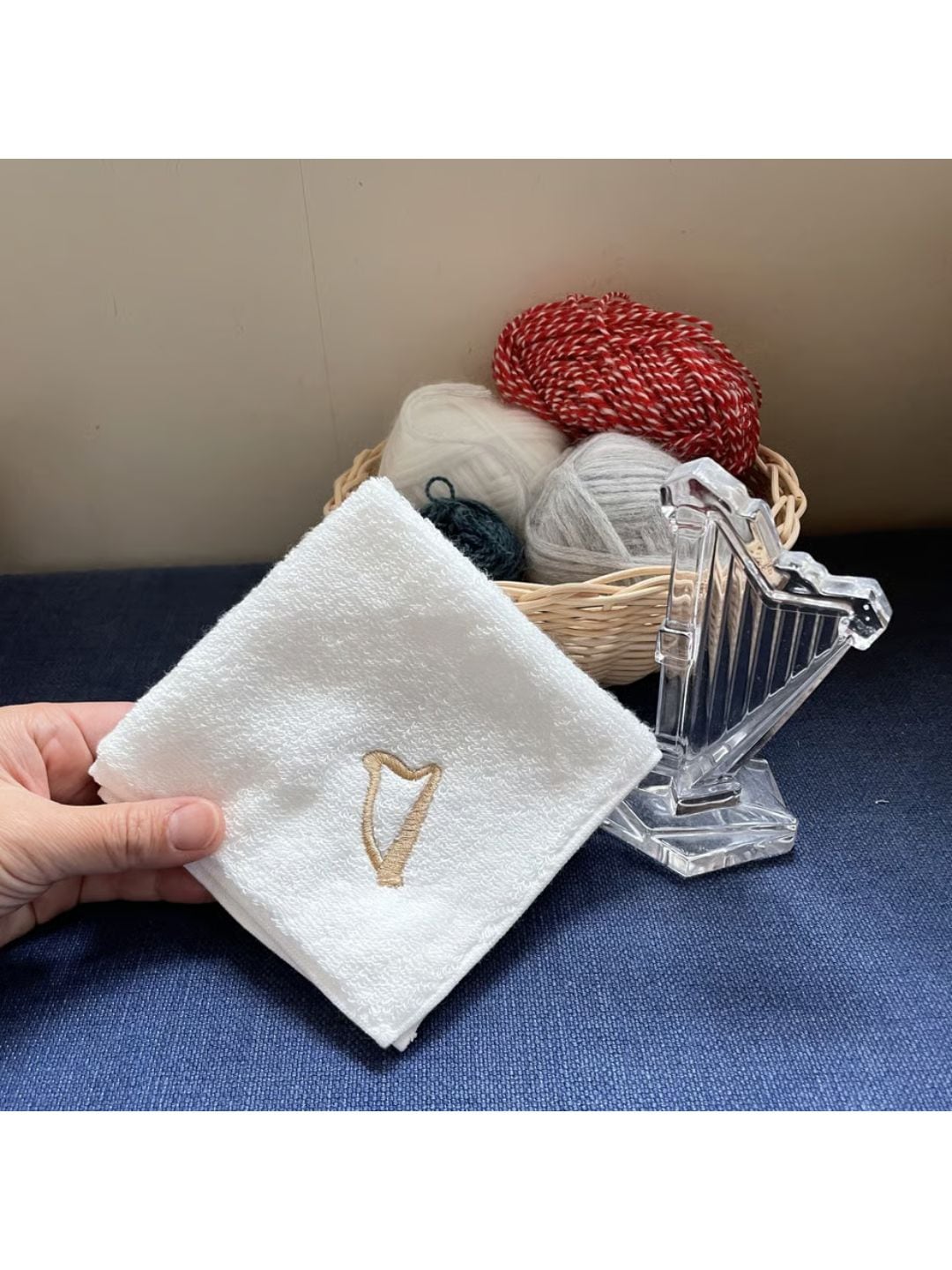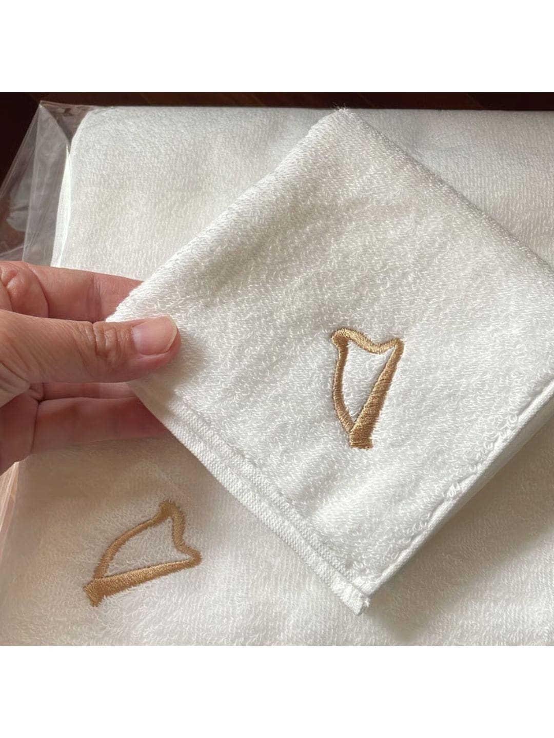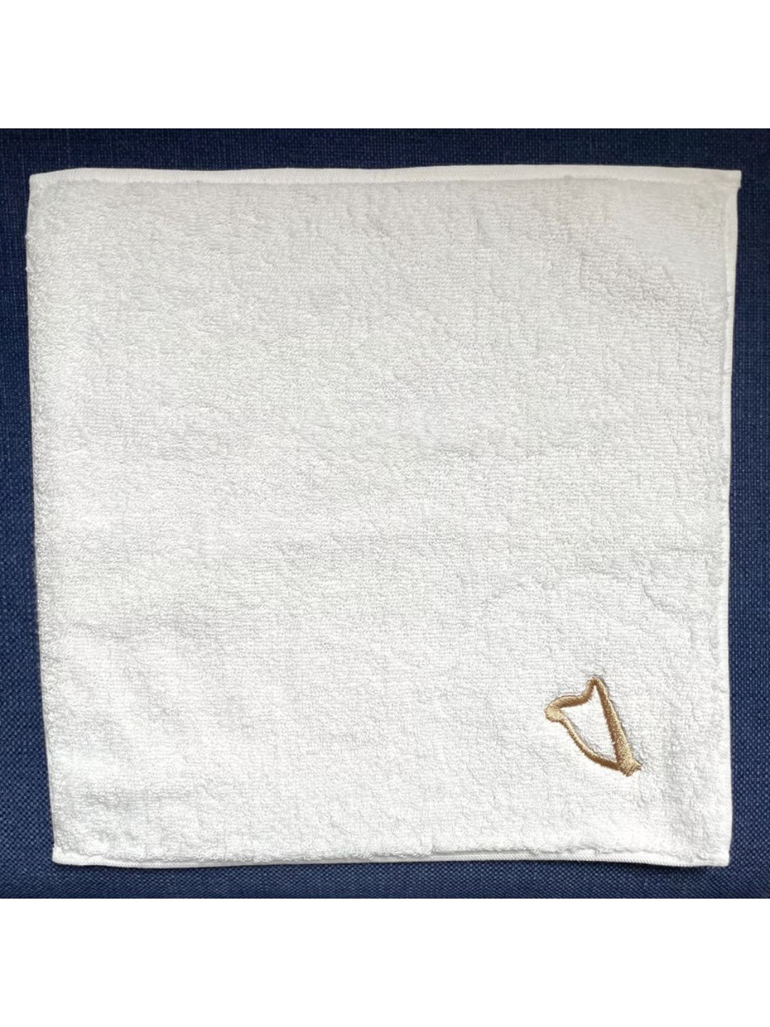 高級糸「スーピマコットン」を使用した今治産の真っ白なタオルに、ハープの刺繍を施しました。