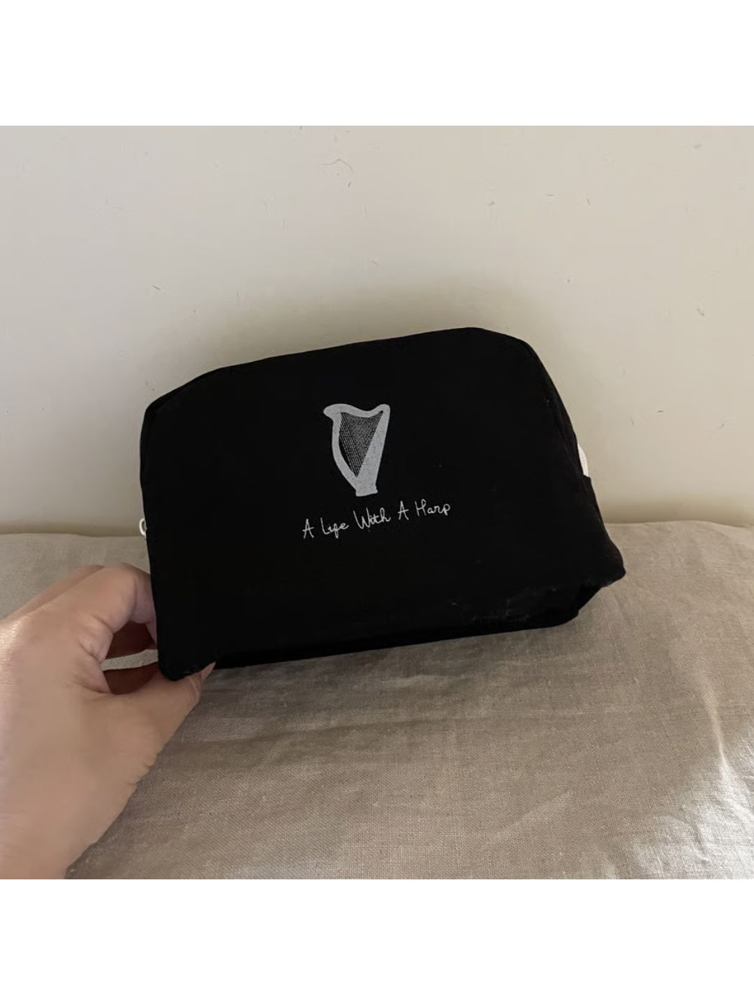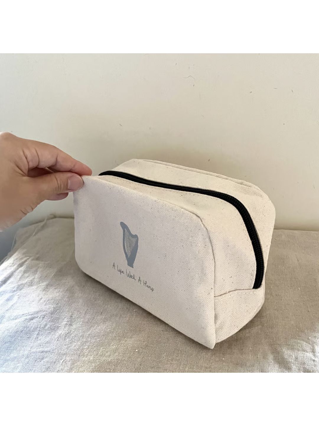 手触りのいいコットンのキャンバス生地に、マチもたっぷり大容量のスクエアタイプのポーチです。 チューナーやチューニングハンマー、筆記用具など、ハープ周りに必要なものがすっぽり入ります。 本体/約W18×H12×D7.5 素材/コットン 色/ナチュラル・ブラック
